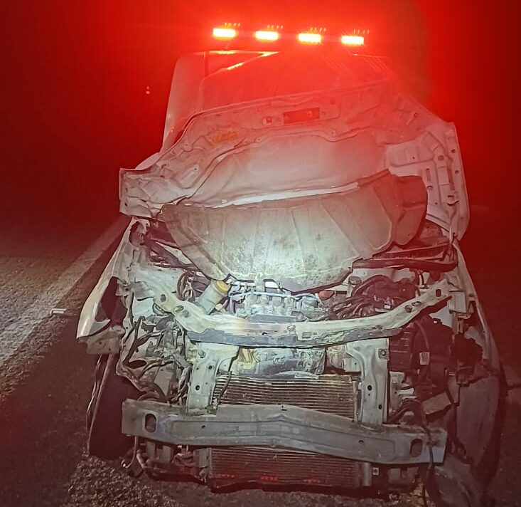 Ambulância colide com boi na BR-232 em Sertânia na madrugada de sexta-feira (9). O veículo de resgate de São José do Belmonte atingiu o animal no Km 299 da rodovia.