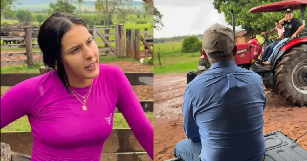 Segundo os trechos divulgados por Ana Castela, ela tentou explicar o funcionamento do trator enquanto mostrava as tentativas de manobra.
