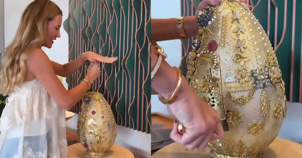 Segundo as imagens compartilhadas, Siebert apareceu em um almoço familiar ao abrir e cortar o ovo de luxo, identificado pela própria como uma peça especial adquirida para a data.