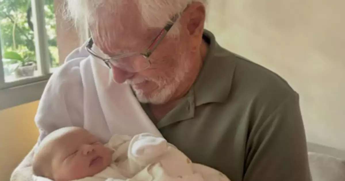 Carlos Alberto, 90, se emociona ao conhecer bisneto em família