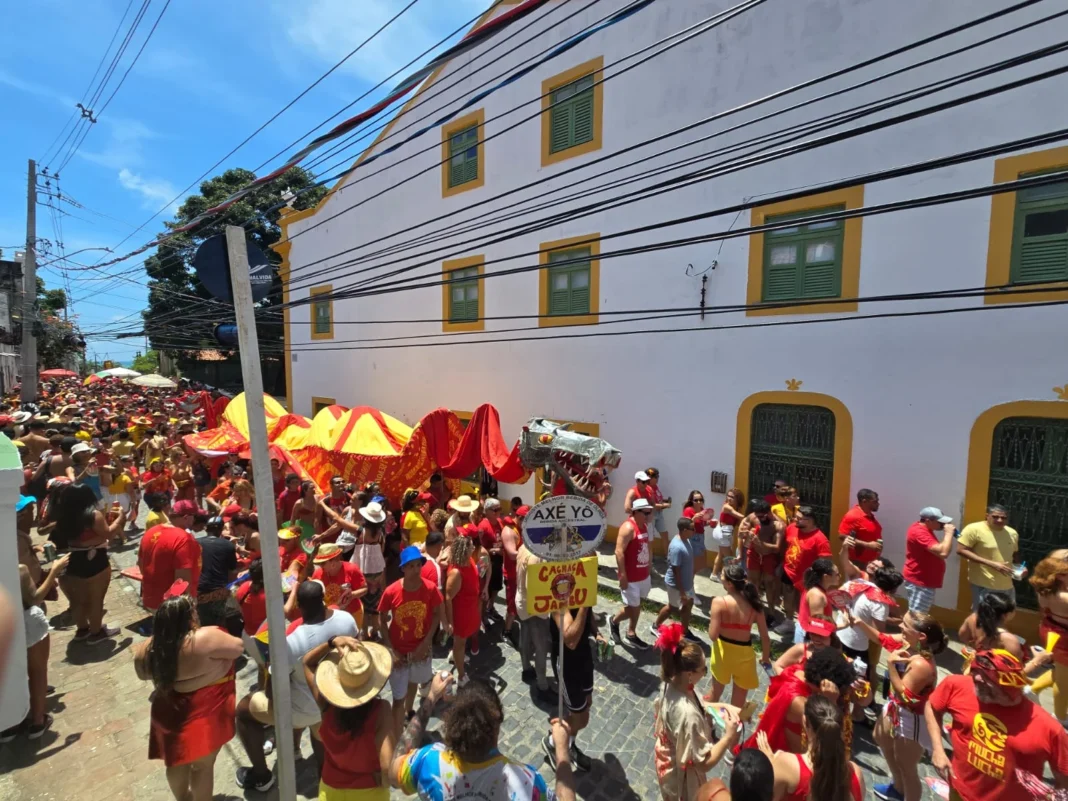 Em Olinda, o alto astral veio com o ensaio aberto do Eu Acho É Pouco, que pintou o Sítio Histórico de vermelho e amarelo, cores que viraram marca registrada do bloco.