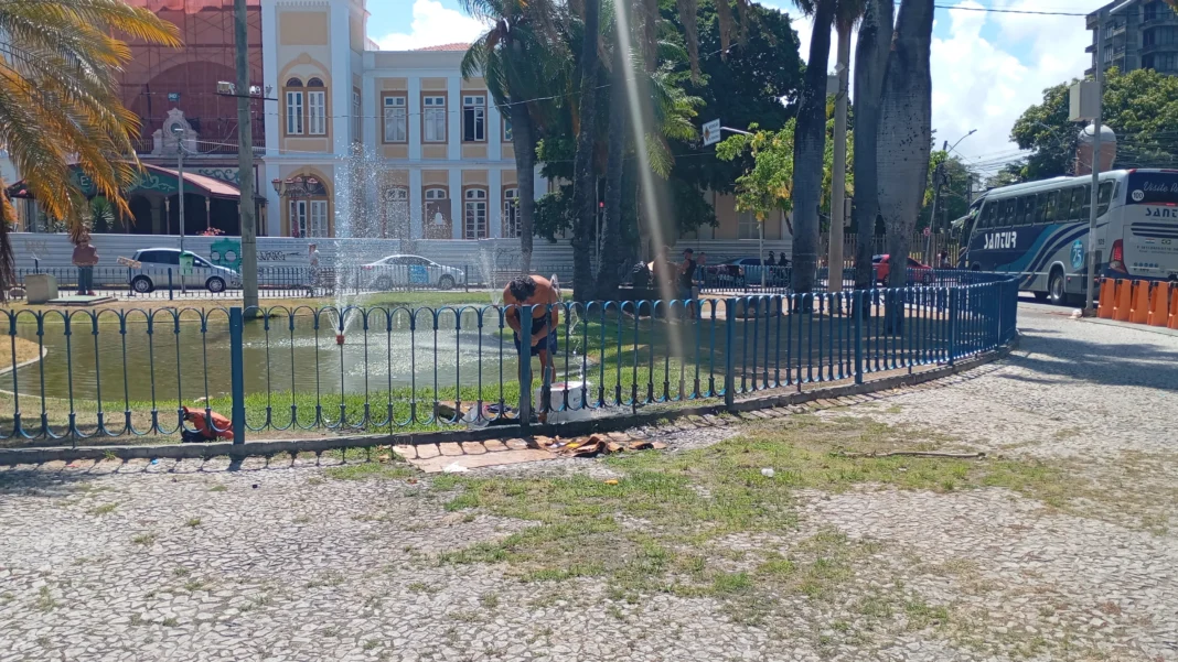 O monumento, construído para embelezar o corredor turístico, perdeu a função ornamental após o abastecimento de água ser desligado por questões de desperdício. Desde então, a estrutura passou a ser ocupada como espaço de higiene pessoal, situação que se agrava nos meses mais quentes, quando a sensação térmica no Recife ultrapassa facilmente os 35 °C.