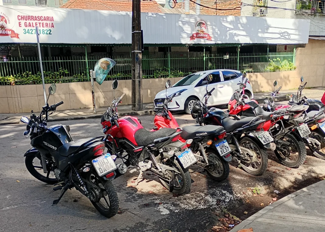 Estacionamento irregular de motos preocupa moradores – Moradores do bairro de Campo Grande, na Zona Norte do Recife, denunciam que entregadores de aplicativos deixam suas motocicletas na esquina da Rua Voluntários da Pátria com a Estrada de Belém, área onde a parada é proibida.