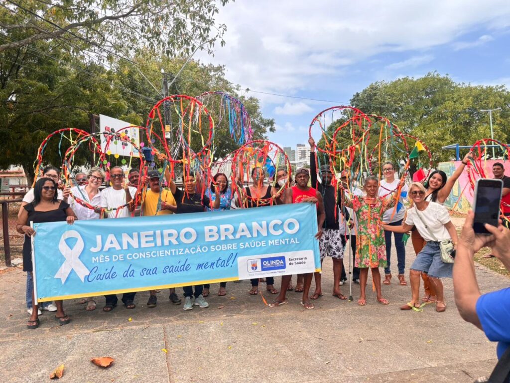 Janeiro Branco em Olinda – A Secretaria de Saúde do município promoveu uma gincana na Praça Vitoriano Regueira, no Bairro Novo, na manhã de 28 de janeiro, para encerrar as ações da campanha dedicada à saúde mental.