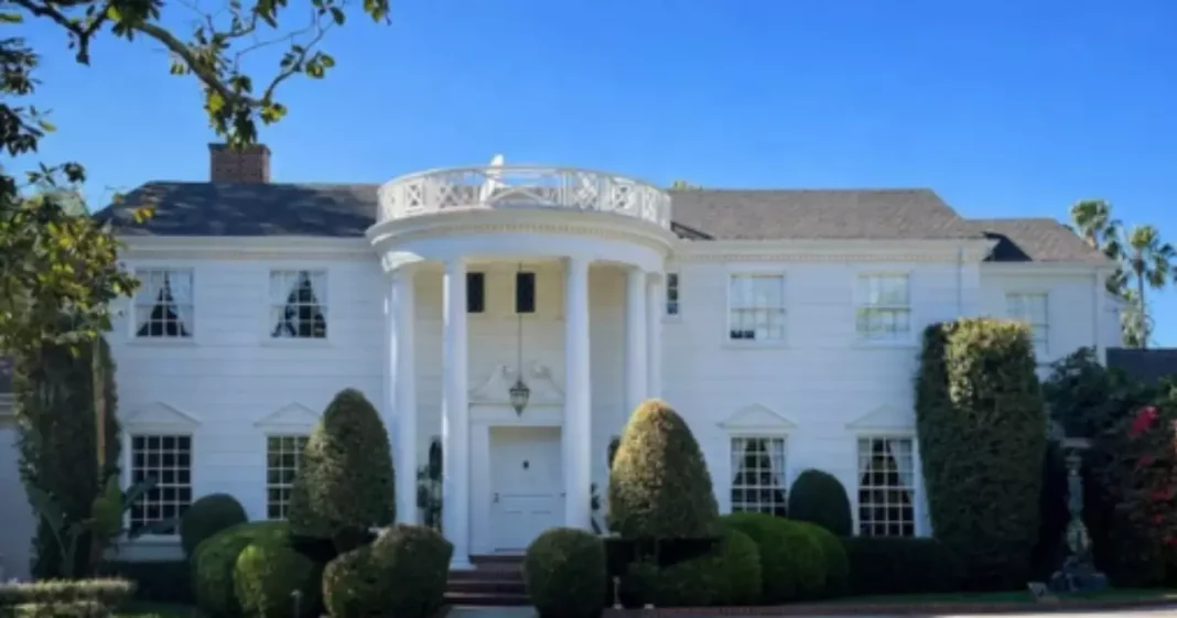 O anúncio descreve a mansão com mais de 1.400 m² de área construída, seis suítes, piscina, quadra de tênis e um salão de festas com bar completo. De acordo com a revista Variety, o imóvel passou por restaurações que mantiveram a fachada clássica, mas modernizaram os espaços internos.