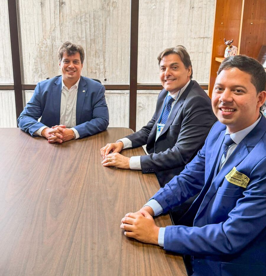 No encontro central da visita, Marconi e o prefeito se reuniram com o deputado federal Lucas Ramos para alinhar prioridades e pleitos junto ao Congresso Nacional.
