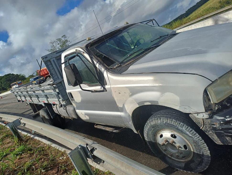 Segundo a Polícia Rodoviária Federal (PRF), o acidente aconteceu por volta das 6h, quando o condutor de um caminhão desviou de outro veículo que trafegava na pista e atingiu um caminhão F-4000 estacionado no acostamento. Na sequência, o primeiro veículo colidiu contra a mureta central.