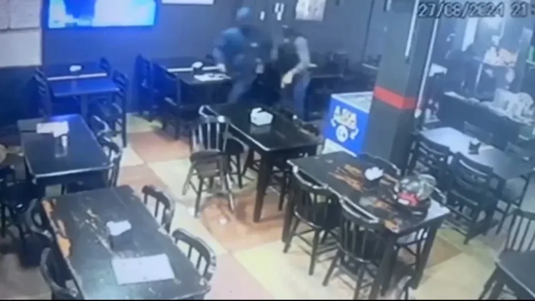 Imagens de segurança mostram quatro homens armados invadindo o estabelecimento e disparando contra Marlon, que morreu no local. O marido da mulher dirigiu o veículo que levou o grupo até a churrascaria, segundo a delegada Mariana Martins, do DHPP.