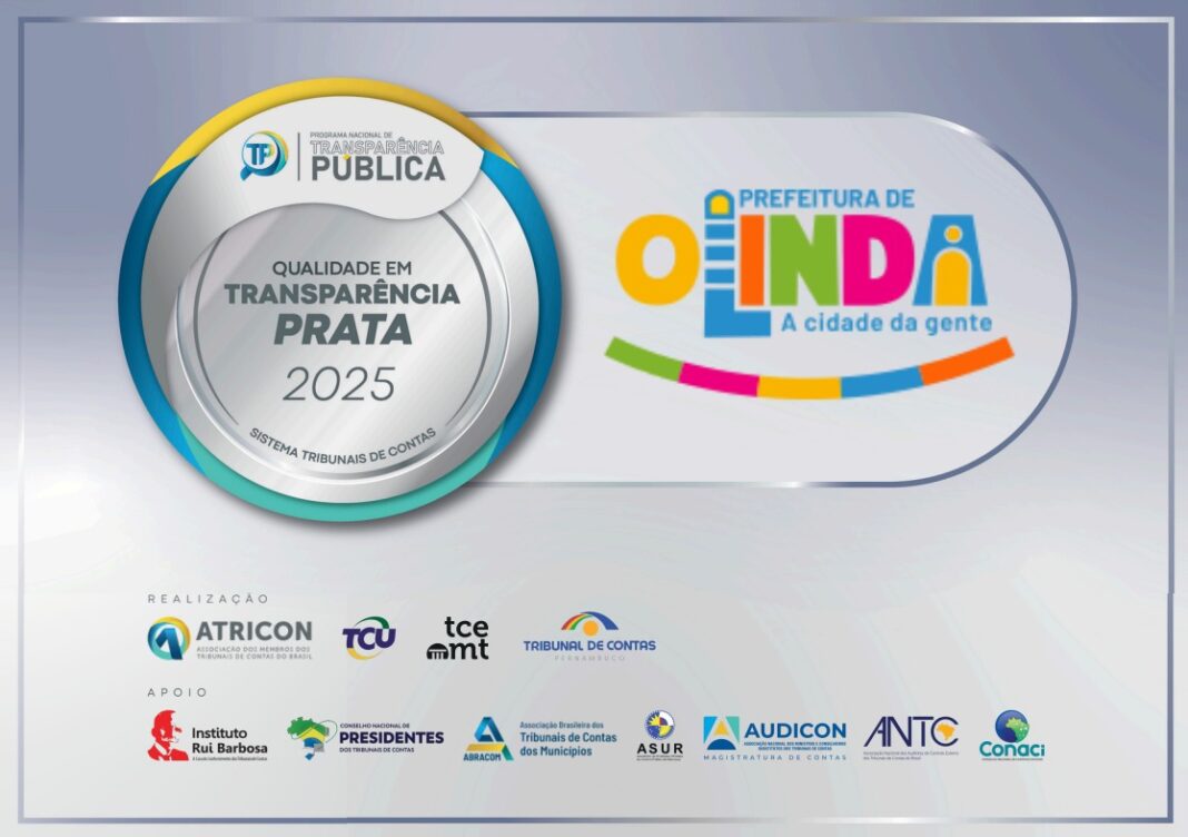 Olinda conquista Selo Prata de Transparência Pública ‑ Em 8 de janeiro, a Prefeitura de Olinda foi oficialmente certificada pelo Programa Nacional de Transparência Pública após alcançar 82,5% de conformidade nos critérios analisados.