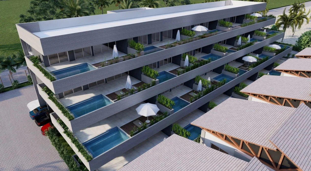 O residencial conta com 12 casas térreas de 212 m², cada uma com cinco suítes e piscina exclusiva.