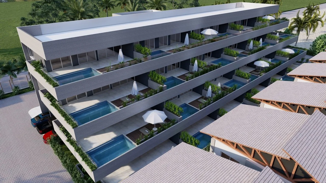 Há ainda 23 apartamentos que variam entre 98 m² e 165 m², todos equipados com varanda, deck, piscina e churrasqueira privativa.