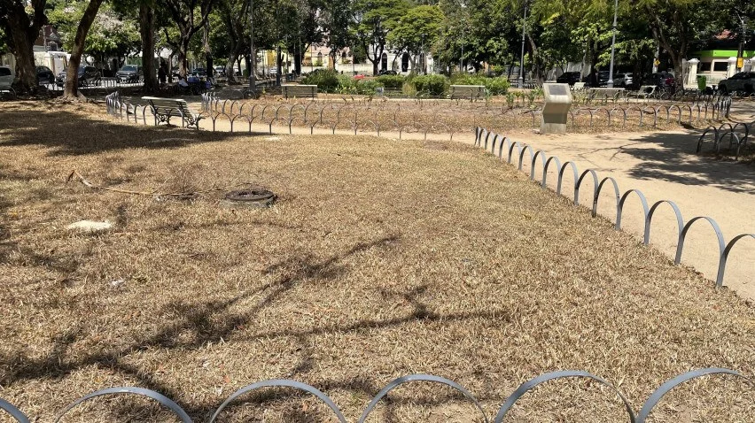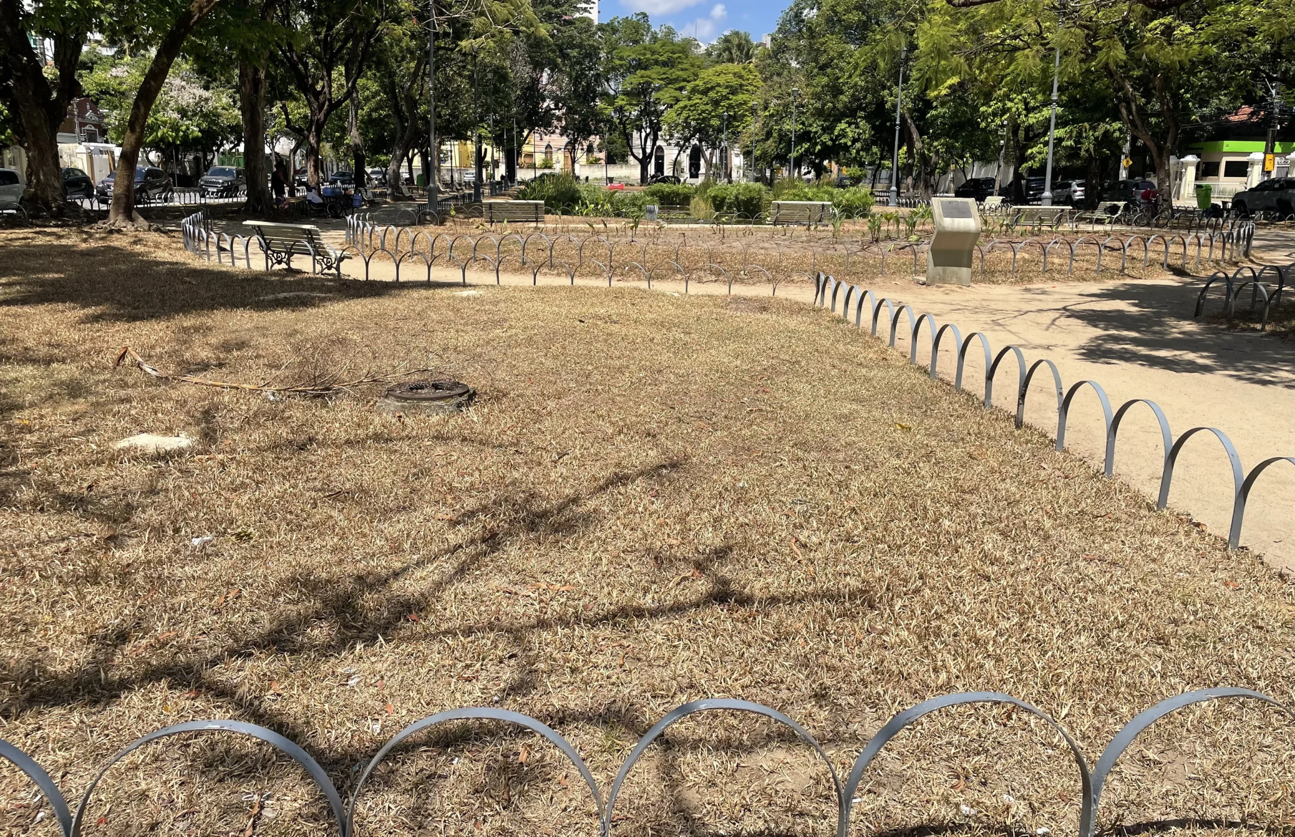 Praça de Casa Forte sofre com gramado seco e sem água – Moradores da Zona Norte do Recife relatam que o gramado da tradicional Praça de Casa Forte apresenta áreas queimadas e falta de irrigação, cenário que aumenta o risco de focos de incêndio em meio às altas temperaturas registradas no verão pernambucano.