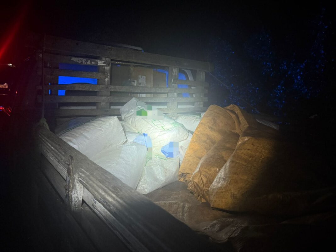 A equipe da PRF sinalizou o trecho do km 116, removeu a carga espalhada e limpou a pista para evitar novos acidentes. Ao retornar para reforçar a segurança do local, os agentes surpreenderam os quatro homens colocando parte da mercadoria em uma caminhonete.