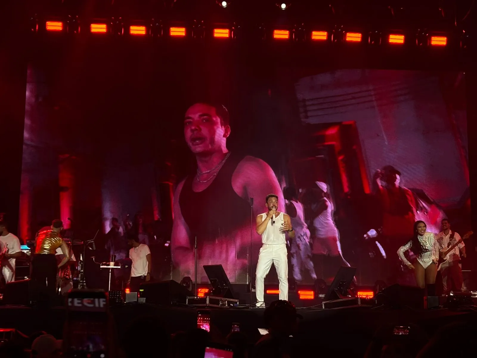 A estrutura foi montada na praia do Pina, onde Safadão assumiu o comando pouco antes das 23h. Após um breve problema técnico, o cantor retornou ao palco prometendo estender a apresentação para compensar os seis minutos de silêncio e embalou o público com sucessos como “Tu Tava na Revoada” e “Passatempo”.
