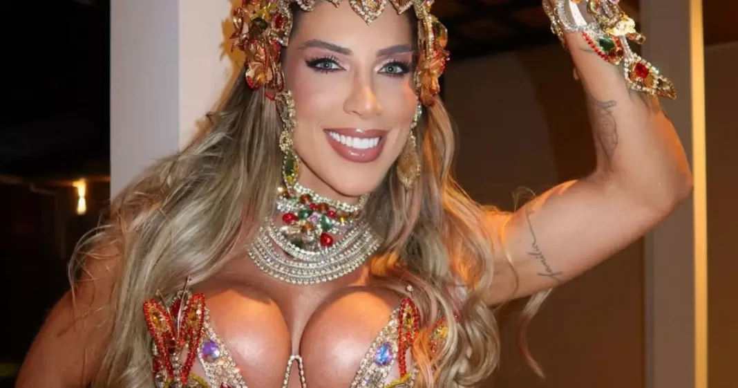Tati Minerato desfila com próteses de 650 ml na Vila – A influenciadora Tati Minerato estreou como rainha de bateria da Vila de São José durante o desfile, usando próteses mamárias de 650 ml.