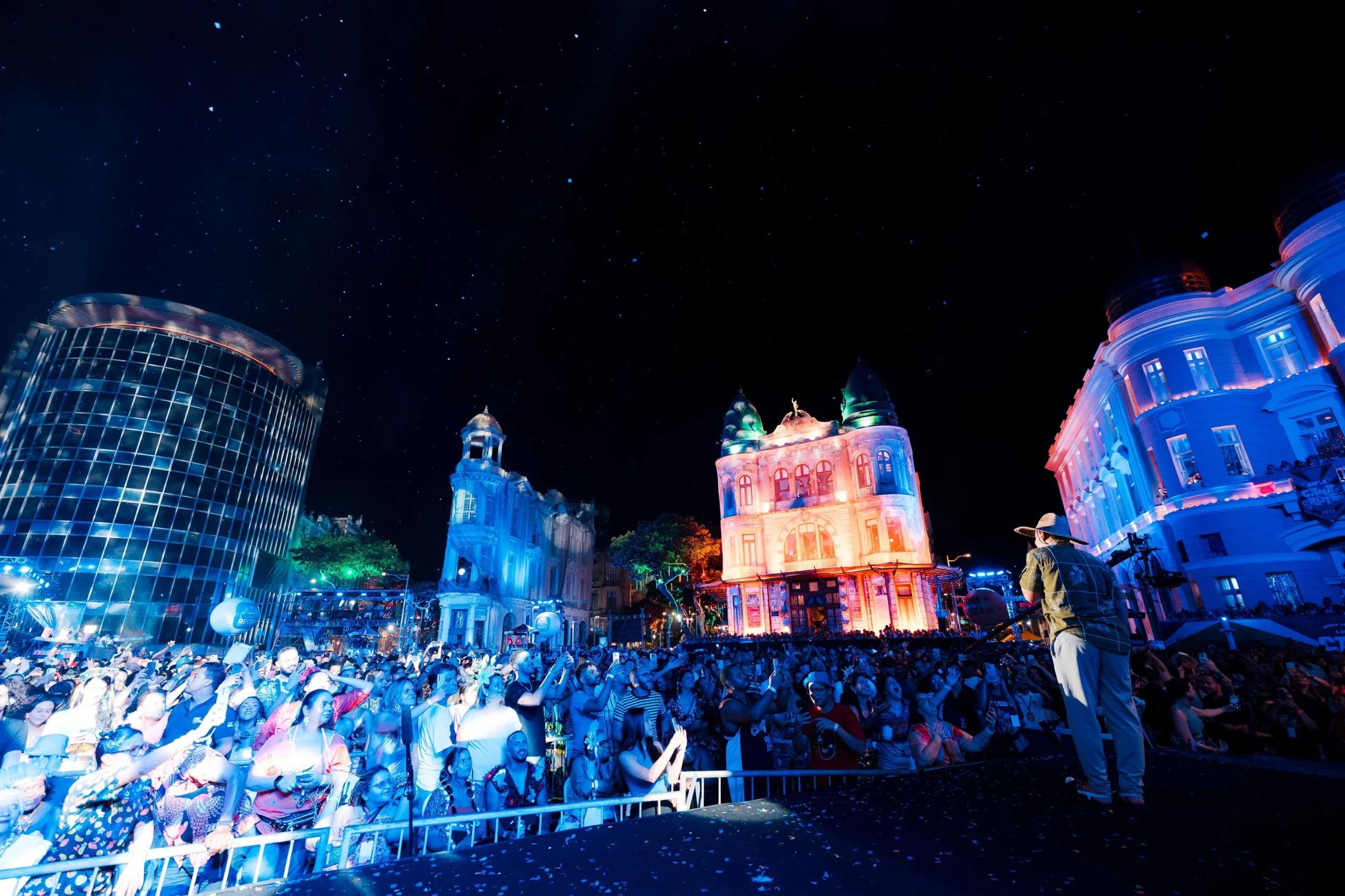 Uma supercâmera instalada no Edifício Leão garantirá imagens panorâmicas, enquanto outra lente no Hotel Plaza mostrará a frente e a retaguarda da escultura gigante, detalhando a chegada dos foliões, segundo a Prefeitura do Recife.