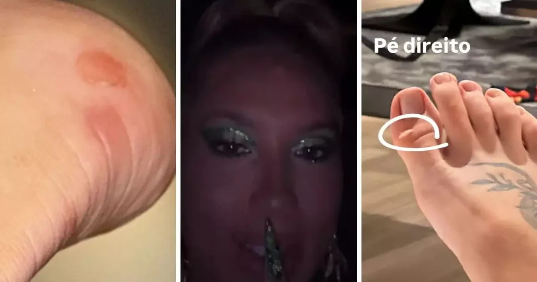 Nos stories, Virginia detalhou que as marcas apareceram em braços, pernas e costas. Ela afirmou ter “descoberto machucado que nem sabia” e brincou dizendo que o esforço valeu a pena pelo sonho de desfilar na Marquês de Sapucaí.