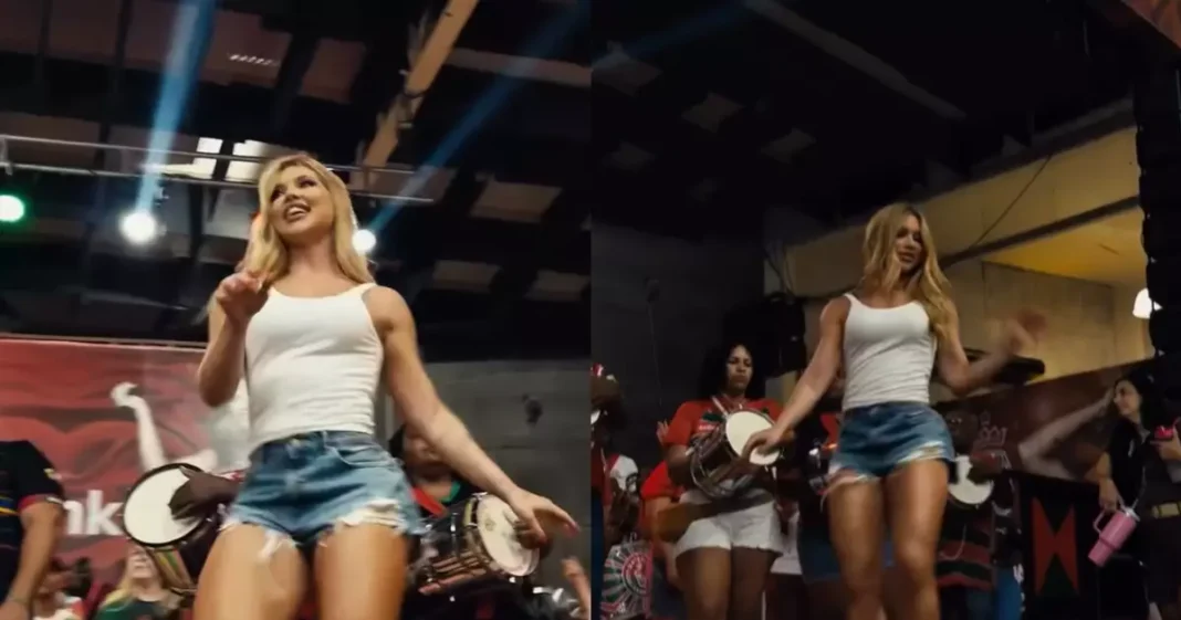 Virginia Fonseca samba no pé anima evento da Grande Rio